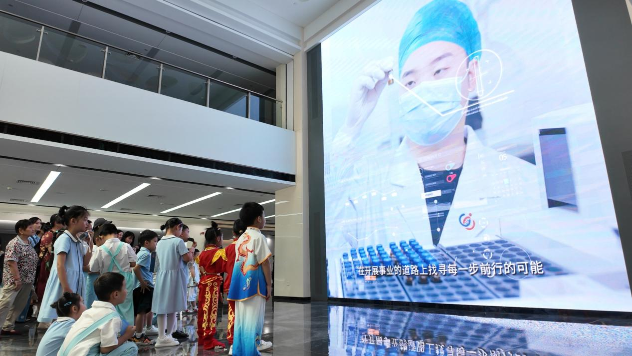 典禮結(jié)束,孩子們參與了一場(chǎng)最具特色的沉浸式課堂——揭秘基因庫(kù)!在專(zhuān)業(yè)講師的引領(lǐng)下,孩子們聆聽(tīng)著生命遺傳的奧秘,觀察精密儀器,將“智創(chuàng)星辰”的種子深植心田。
