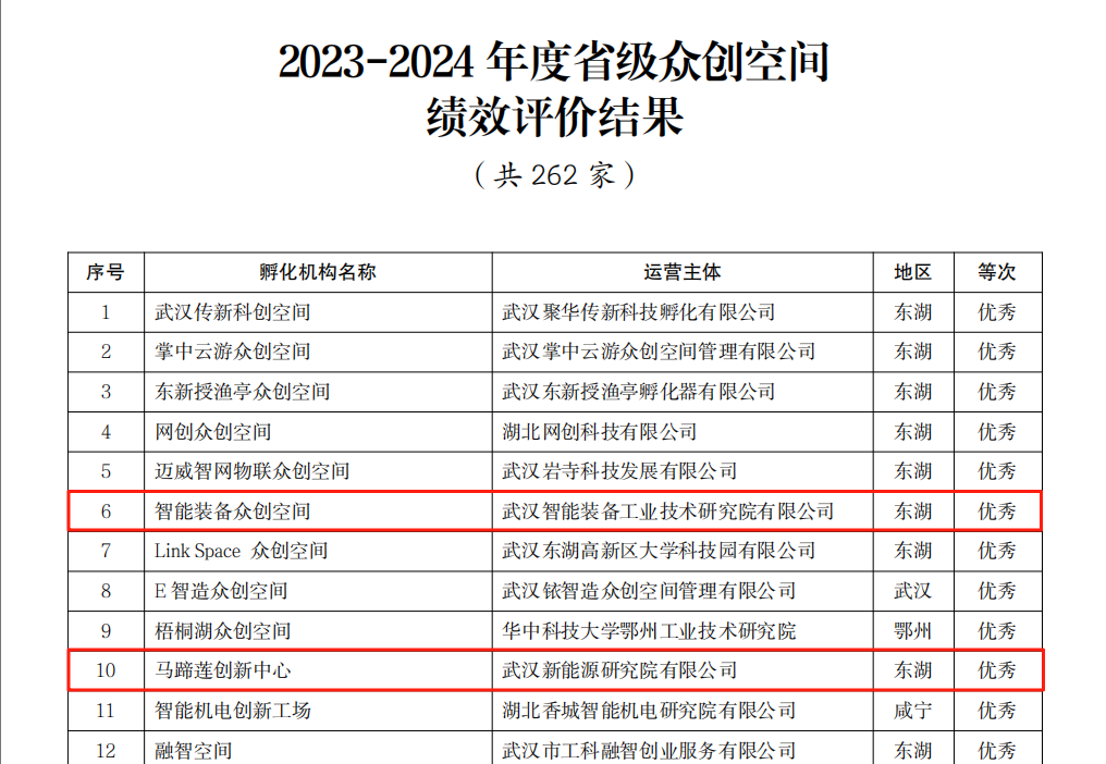 日前,湖北省科技廳關于2023-2024年度省級以上科技企業孵化器和眾創空間績效評價結果結束公示期,湖北科投運營的3個國家級、省級眾創空間獲評“優秀”,6個國家級科技企業孵化器、國家專業化眾創空間獲評“良好”。